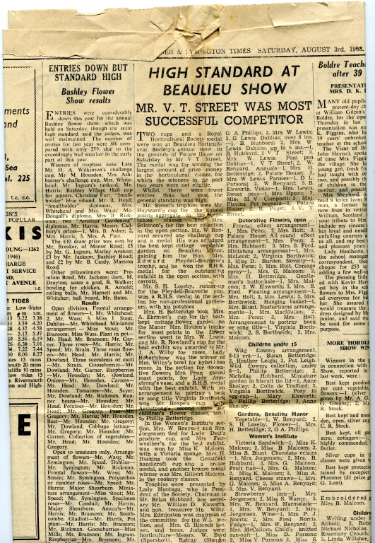 A selection of news clippings can be found below. Mostly highlighted the fantastic awards Mr Street achieved with his Garden work. As time went on Mr Street was banned from taking part in some garden competitions because he was just too good and kept on winning!